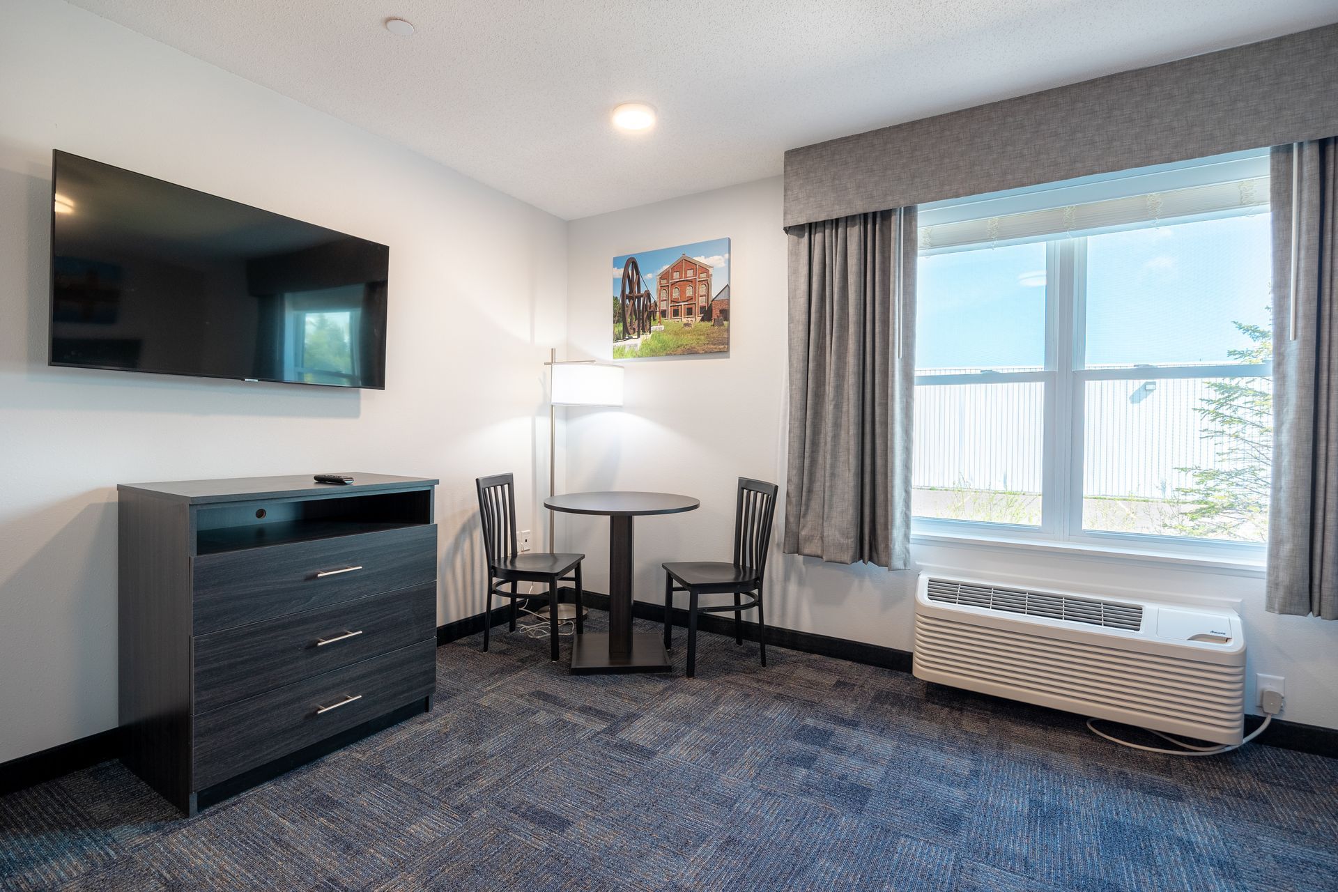 The ADA accessible King room at the Independence Stay offers a safe and relaxing space to unwind. We offer guest laundry and a 24 hour fitness room. Whether you stay one night, one week or long term you are always welcome here!